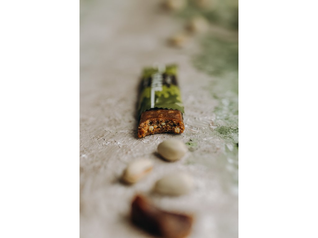Vláčná, poctivá a bez zbytečností. Křup pistácií, jemná čokoláda a 17 % bílkovin v každé tyčince.